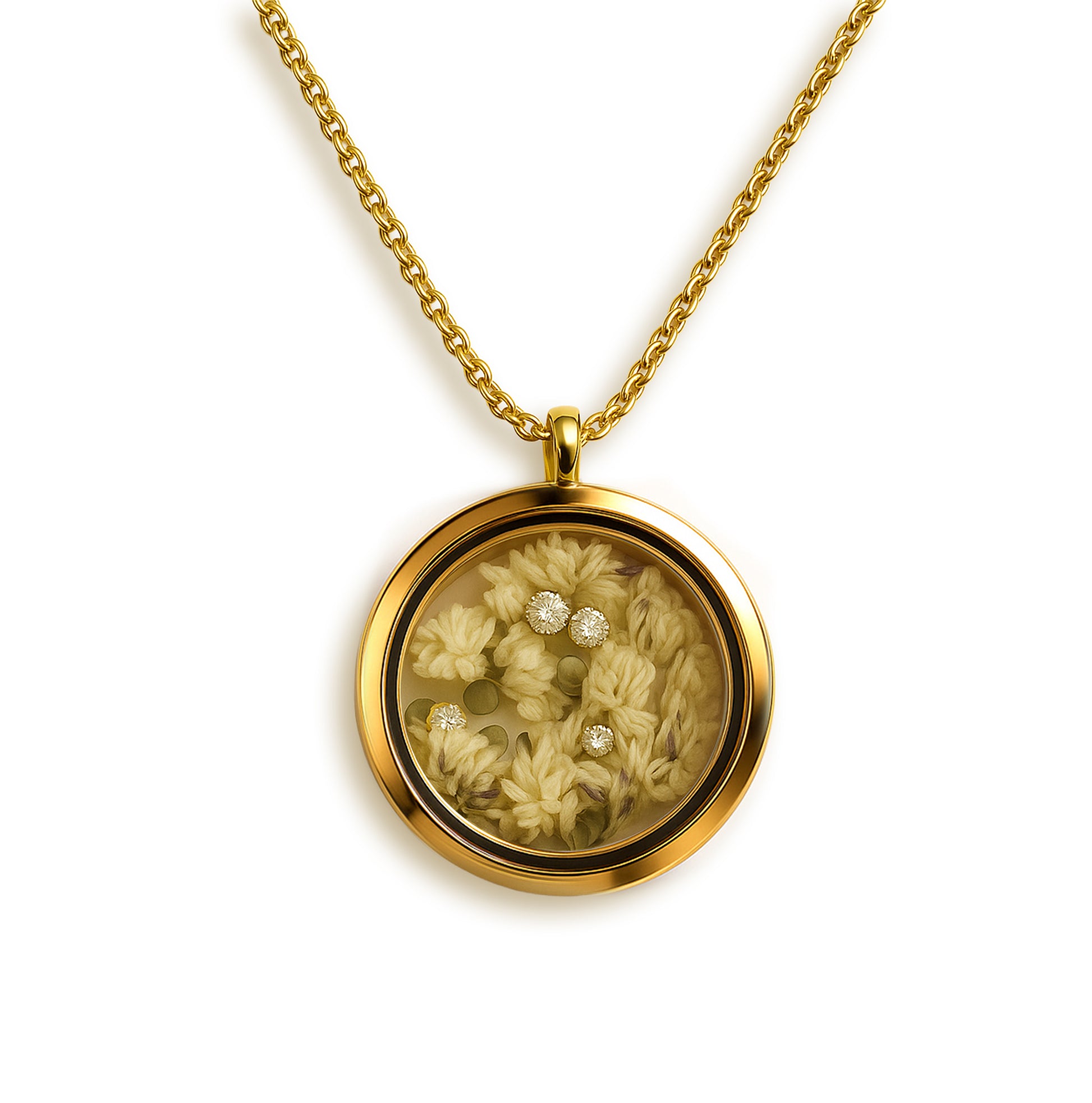 Ketten in Gold gehören zu den beliebtesten Schmuckstücken und verkörpern neben dem schlichten und hocheleganten Design die Wertigkeit und den besonderen Glanz von belleANICE. Jedes Medaillon ist ein Unikat – gefertigt mit echten, handverlesenen Blüten. Da jede Blüte auf natürliche Weise getrocknet wurde, kann ihre Form oder Lage leicht variieren. Diese feinen Unterschiede machen jedes Stück einzigartig – so individuell wie die Natur selbst.